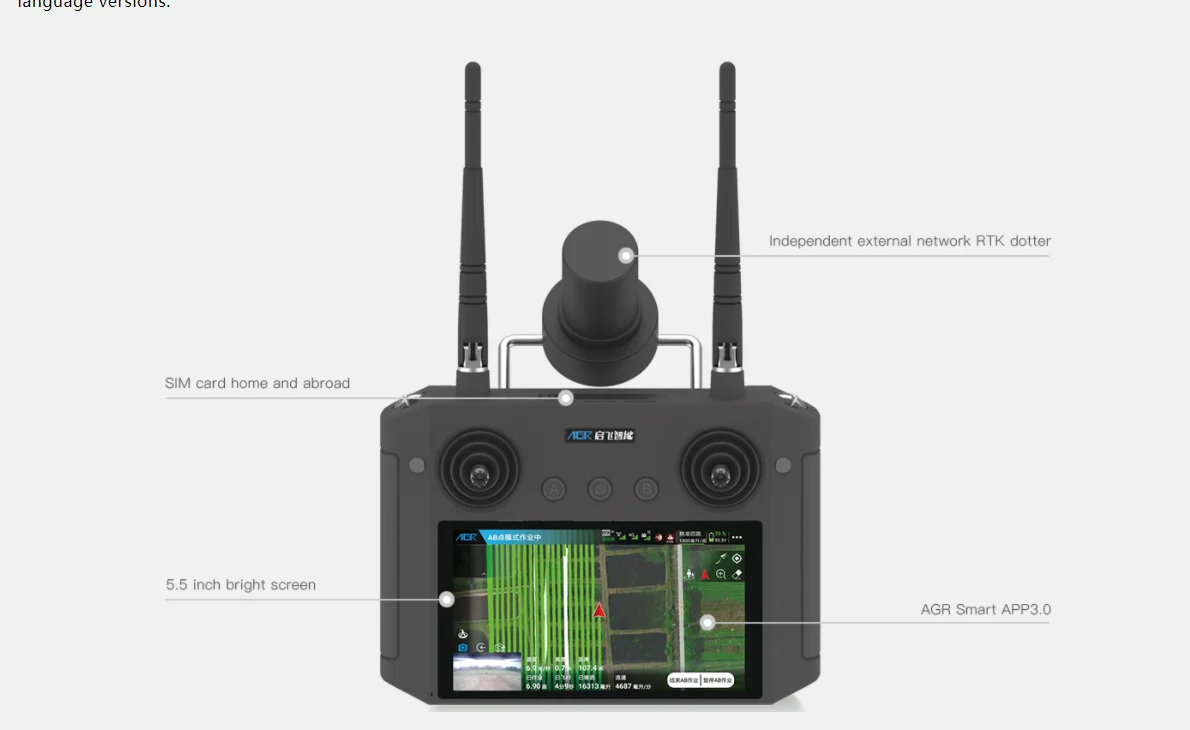 RTK APP 3۔{1}} سافٹ ویئر مینوئل، AB پوائنٹ، روٹ پلاننگ اور دیگر آپریشن موڈ فراہم کرتا ہے۔ یہ اصل وقت میں آپریشن ڈیٹا کو فیڈ بیک یا ایڈجسٹ کر سکتا ہے، اور دوائی شامل کرنے اور بیٹری تبدیل کرنے کے بعد فوری طور پر بریک پوائنٹ آپریشن کو دوبارہ شروع کر سکتا ہے۔ آپریشن آسان ہے۔ اے پی پی کا بیرون ملک ورژن انگریزی، پرتگالی، ہسپانوی، جاپانی، کورین اور دیگر 10 سے زیادہ چینی زبانوں کے ورژن کے درمیان مفت سوئچنگ کا احساس کرتا ہے۔